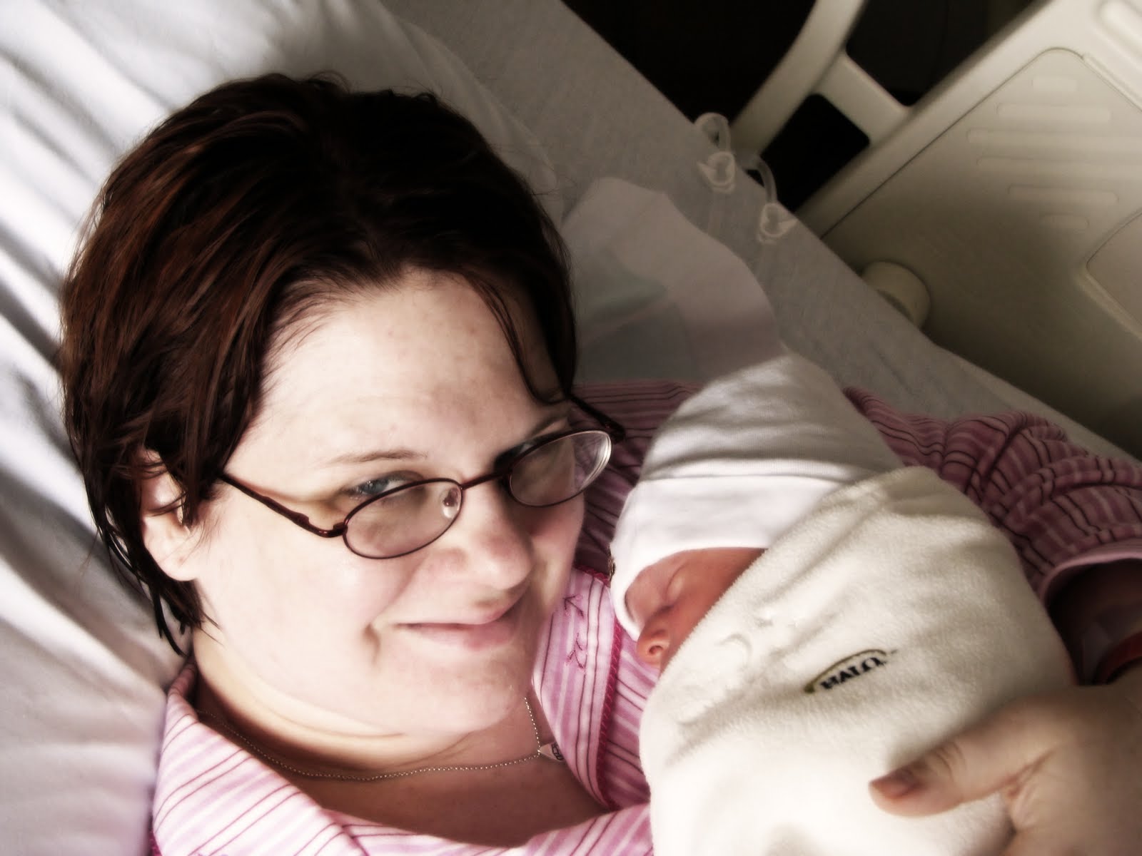Easter was quite the experience. We got up and managed to get ourselves all ready for the Easter service and we were only 10 minutes late. :) We might have made it on time, but we stopped by John and Bev Griswold's house, so that they could meet the little guy (John fell off a roof he was working on about 3 weeks ago and broke his pelvis, so church was out for him). It was great to see them and catch up REALLY fast before we headed out to the service. Keegan slept through the entire service (which surprised us, since he hadn't eaten in nearly 5 hours!), and woke up just as we made it to Great Grandma and Grandpa's house. The day was a whirlwind day of Great Aunts and Uncles, cousins and even Great Great Uncle Dwayne. Keegan was passed around from person to person and by the time late afternoon came, he was done. Geoff and I had to take him upstairs and have some quiet time, just the three of us.